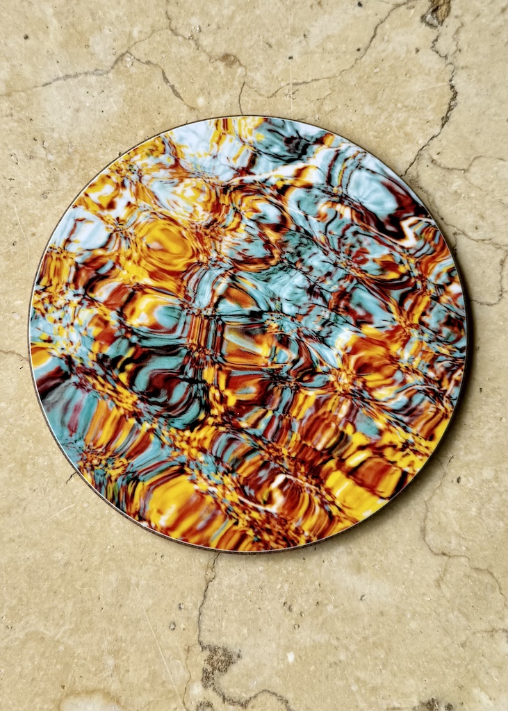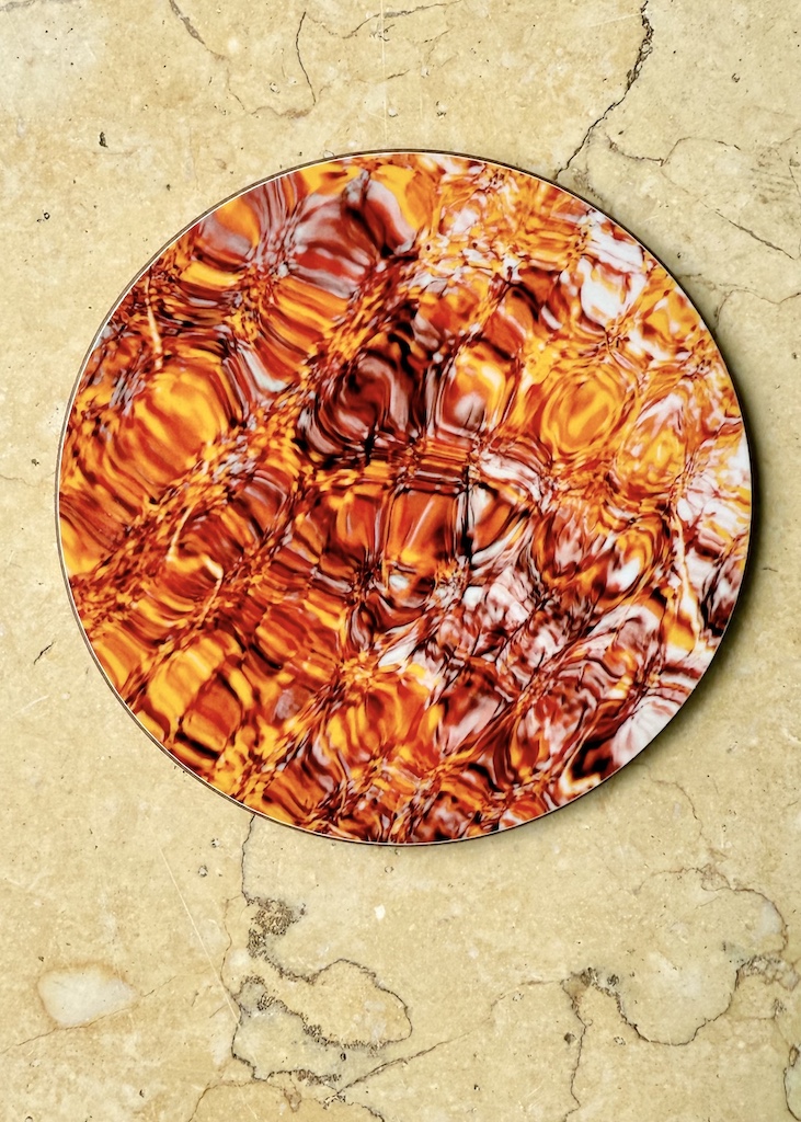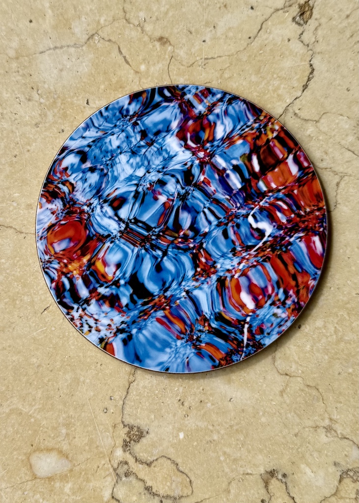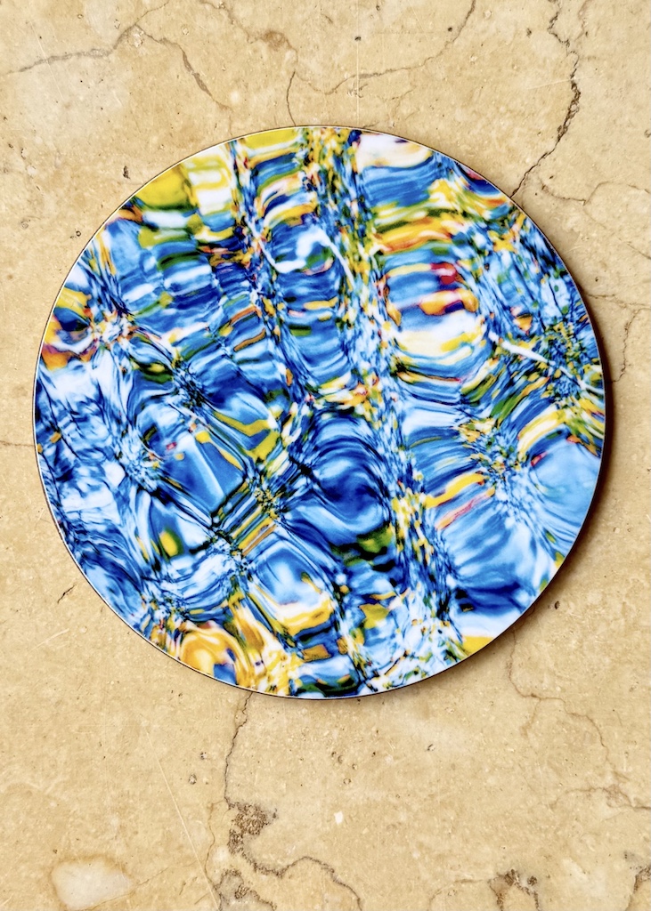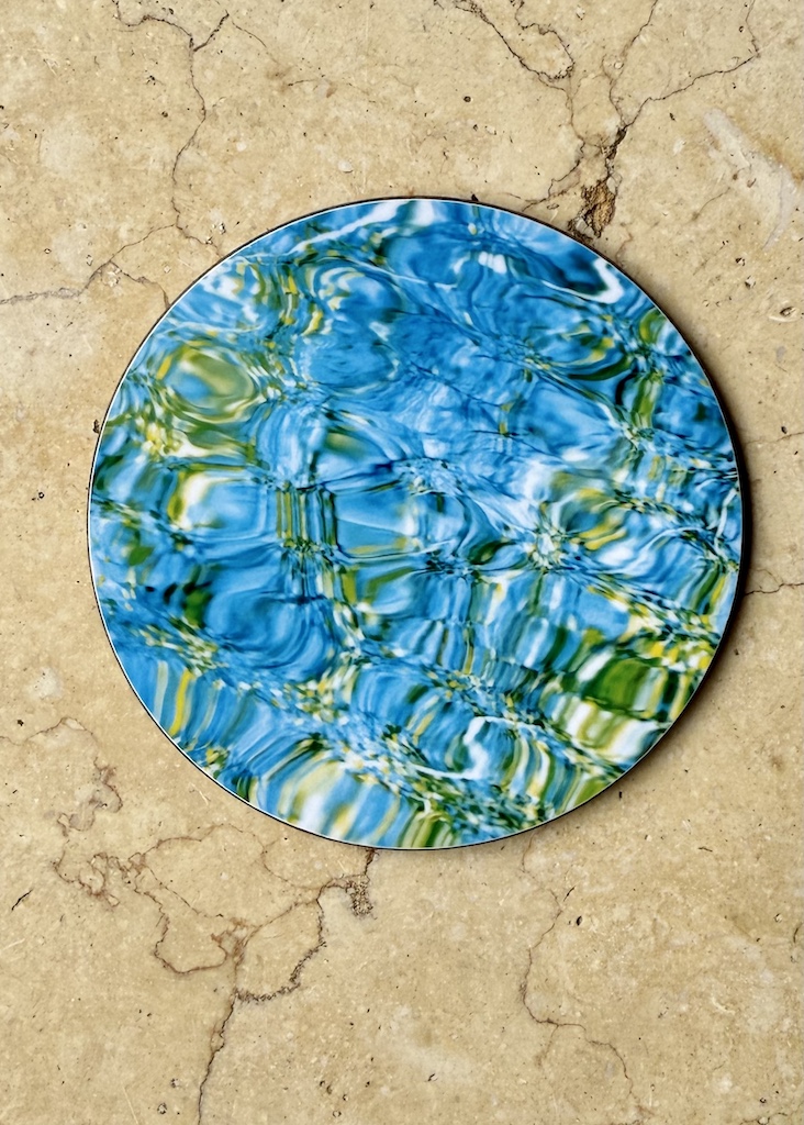 These = brightly coloured coasters have been created from an original photograph of the blue sky and yellow autumnal leaves reflected in rippled water (coaster no2). The original image has then been remastered into a lovely colourful collection of hues to harmonise with any colour scheme. Perfect for protecting your tabletops from hot or wet glasses these unique coasters feature a photograph by award-winning photographer Nathalie, the founder of Pelmont Home.