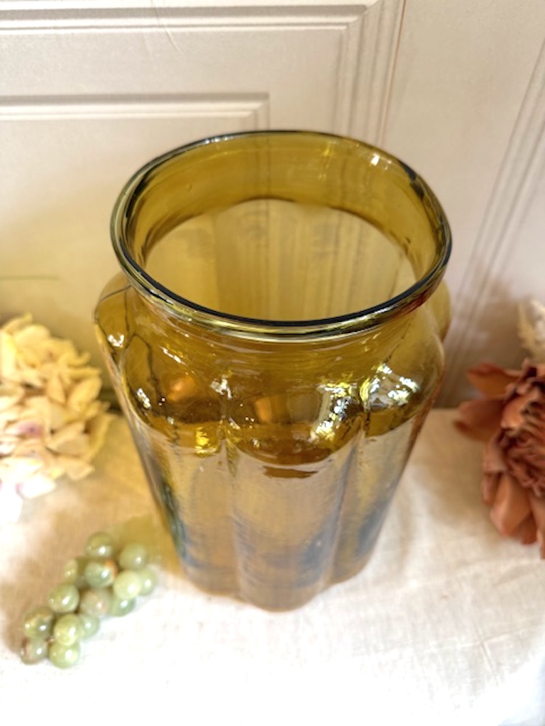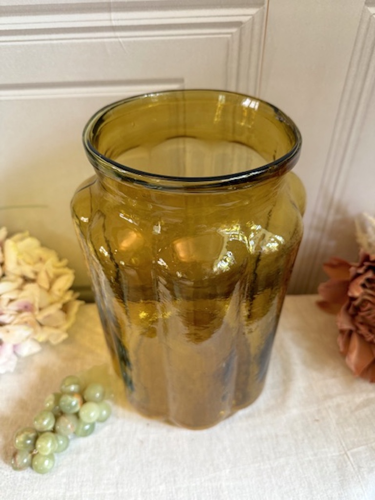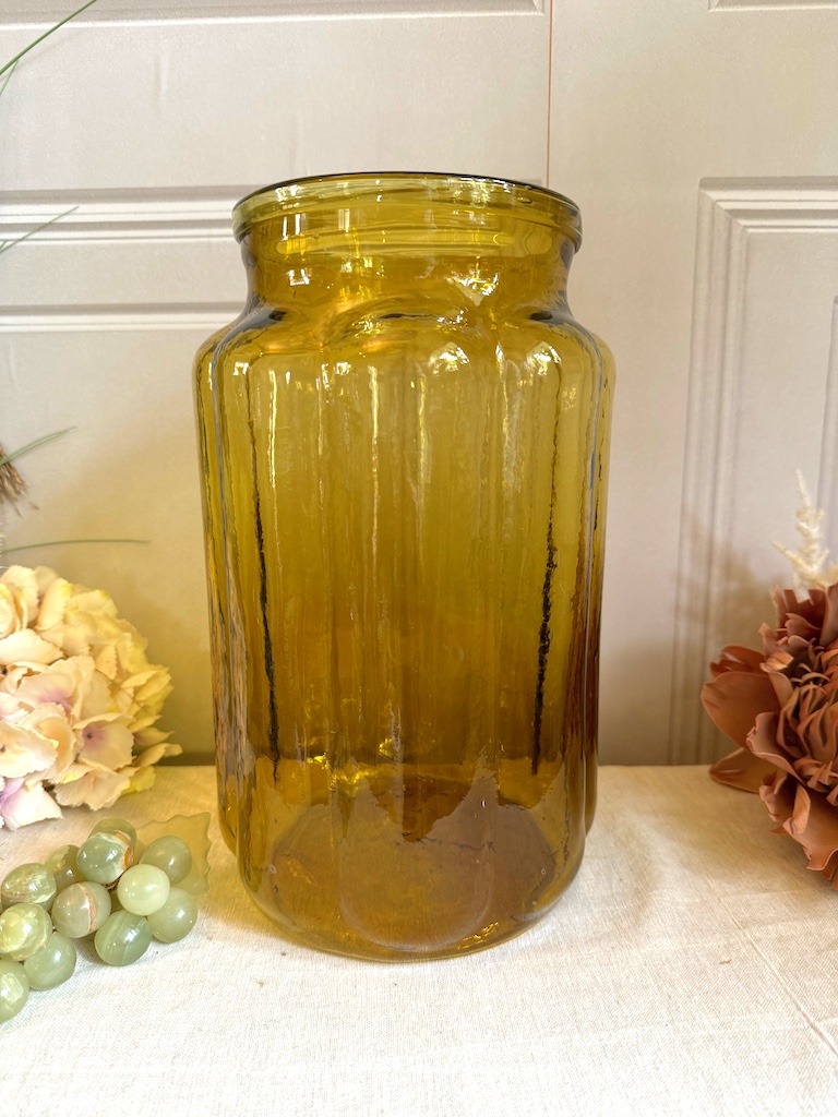 A fabulous vintage rare amber glass hungarian pickling jar. Perfect for those large bunches of flowers these old jars make a real statement.