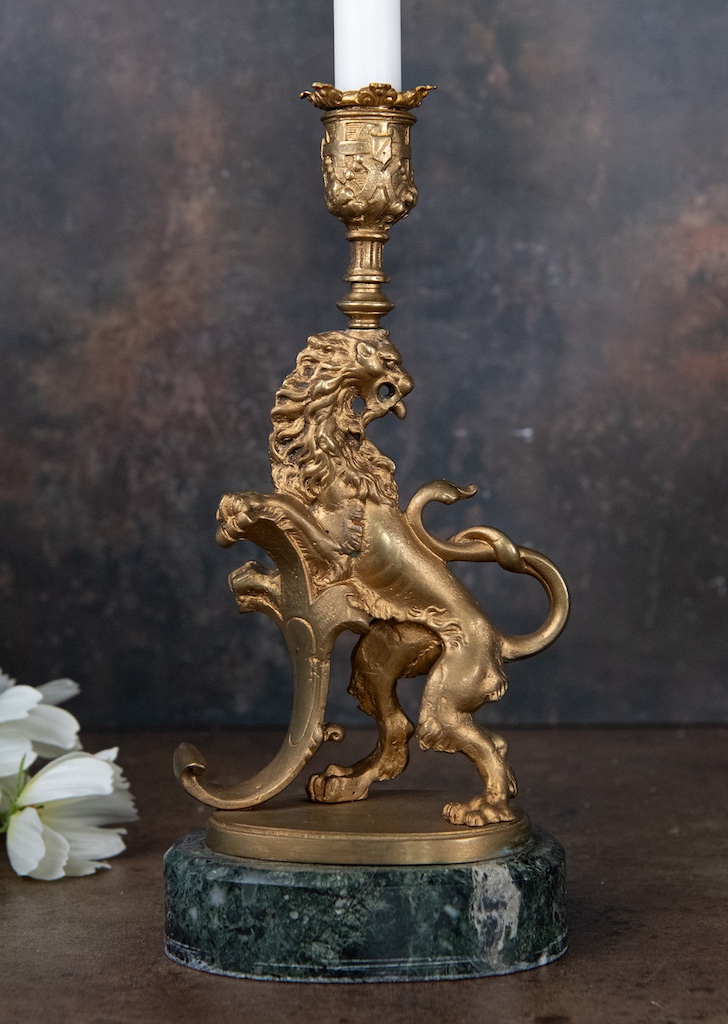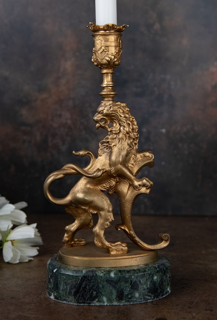 Antique Metal Lion Candlesticks – £225