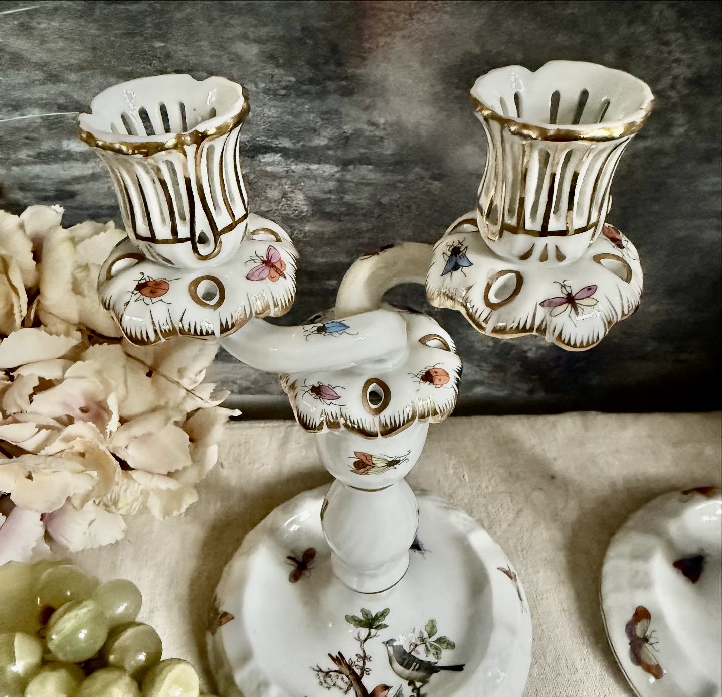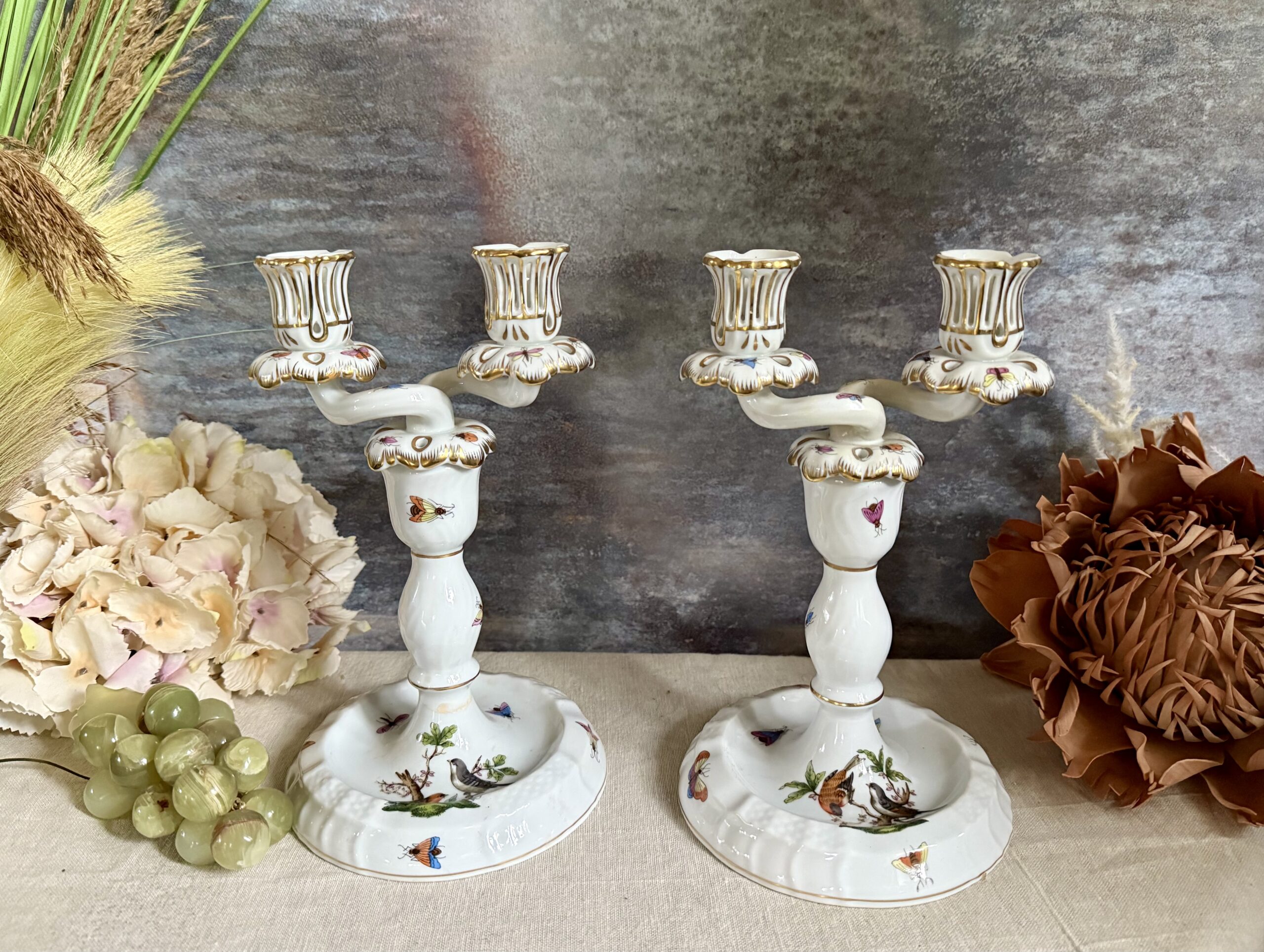 SOLD – Herend Rothschild Bird Candlesticks