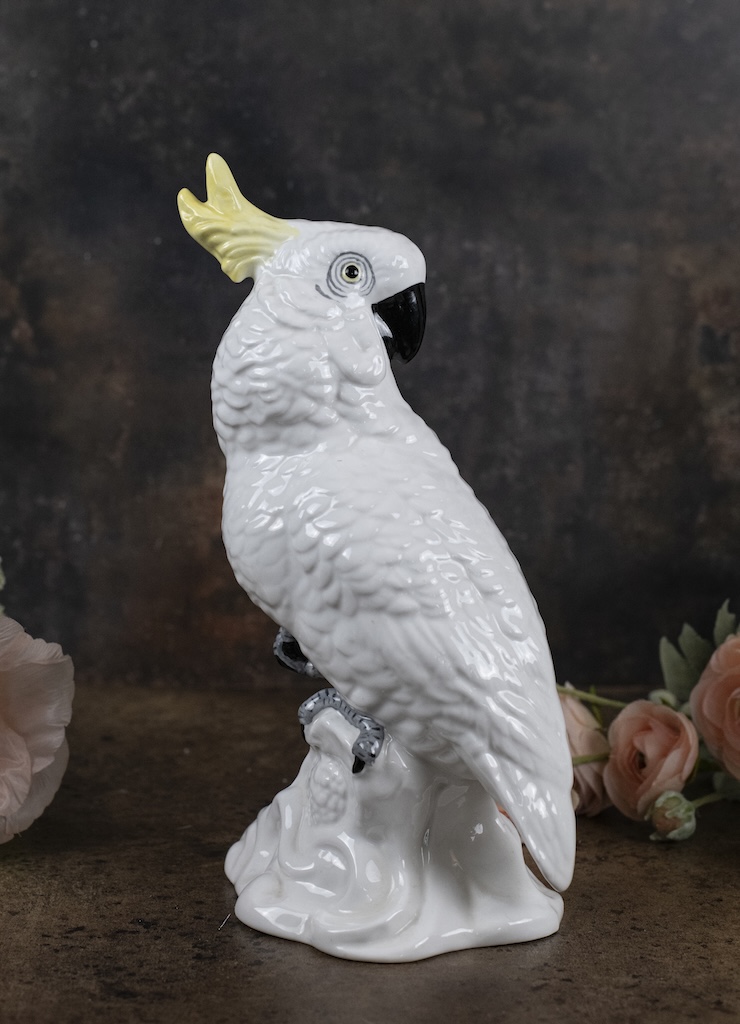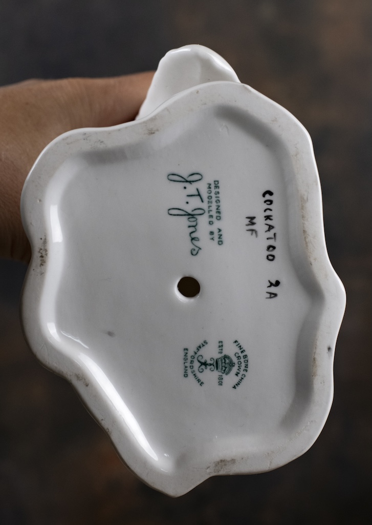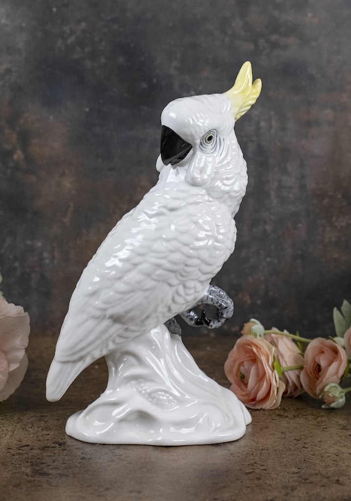 Cheer up your mantlepiece with this fabulous Crown Staffordshire porcelain model of a sulphur crested cockatoo by the renowned J T Jones.