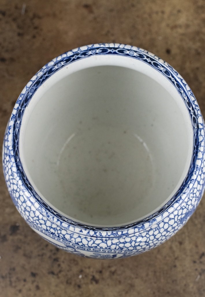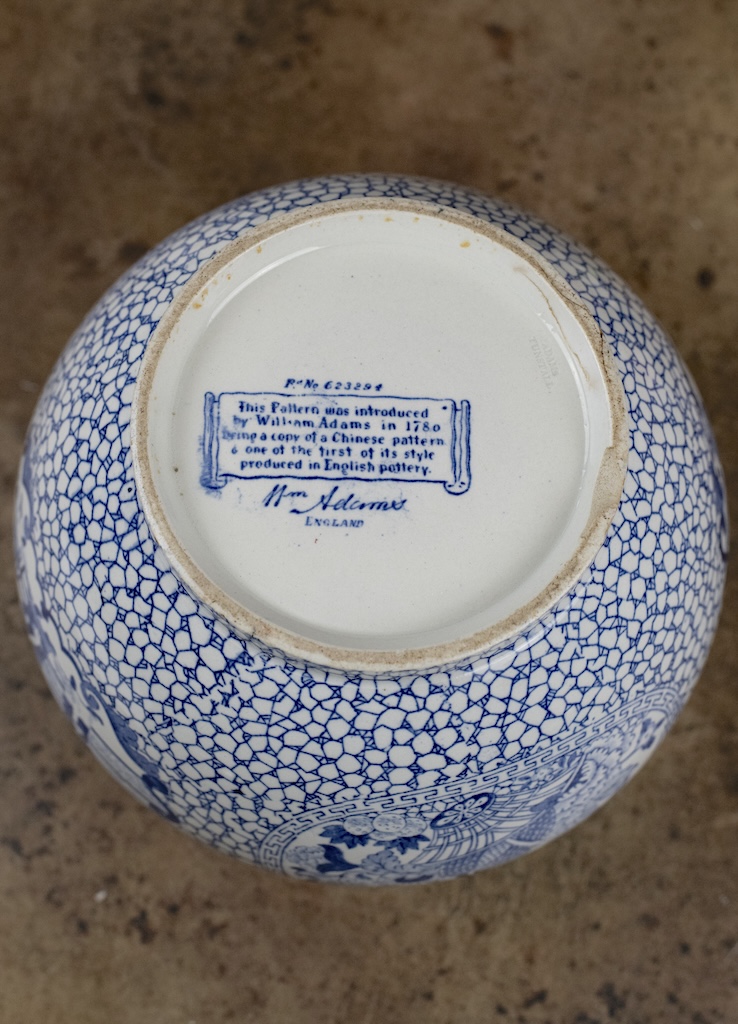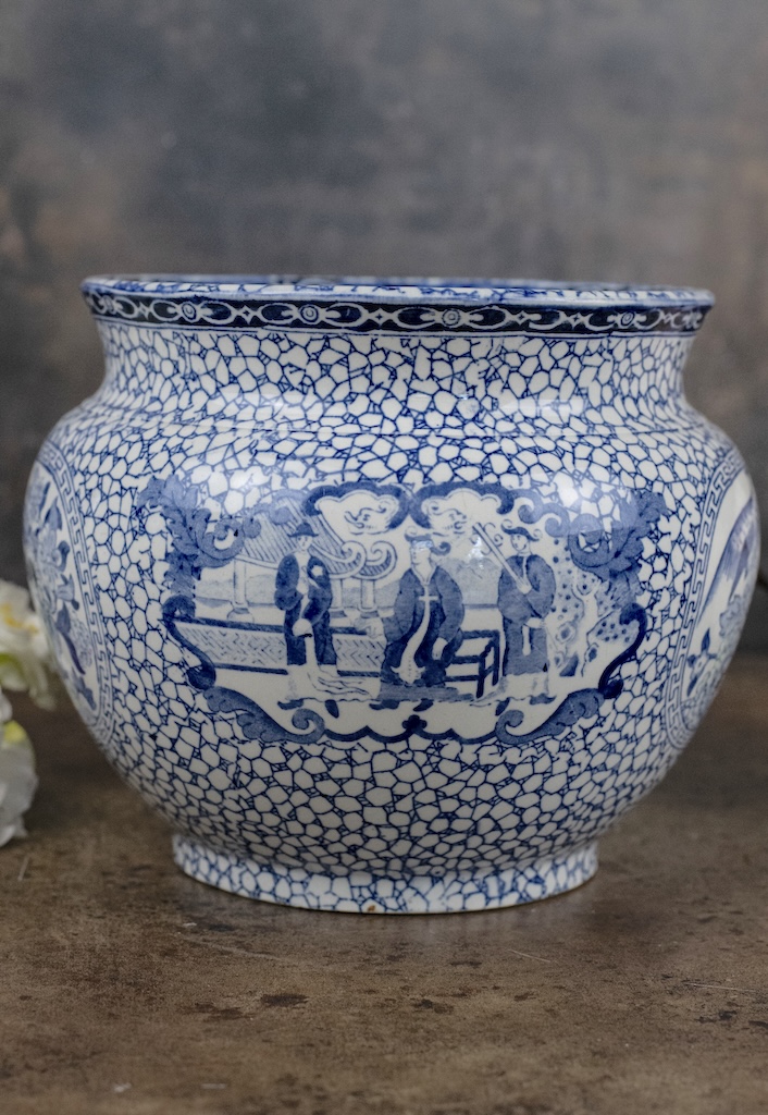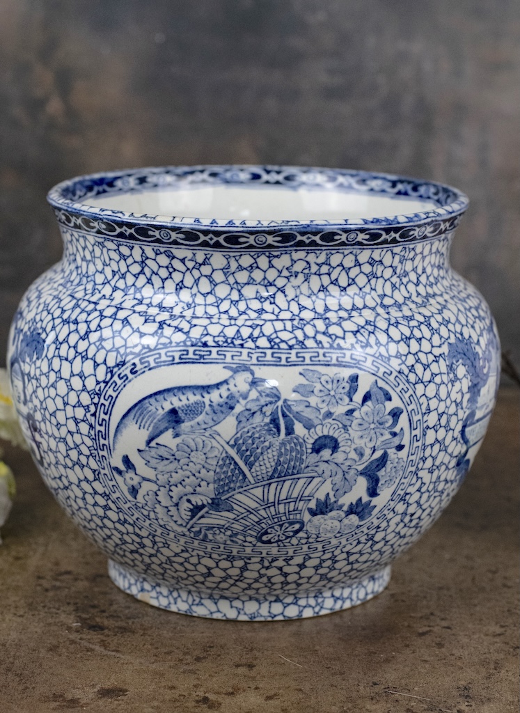 Blue and white has long been a much loved colour combiation for our homes and this lovely round planter by William Adams is a fantastic example.